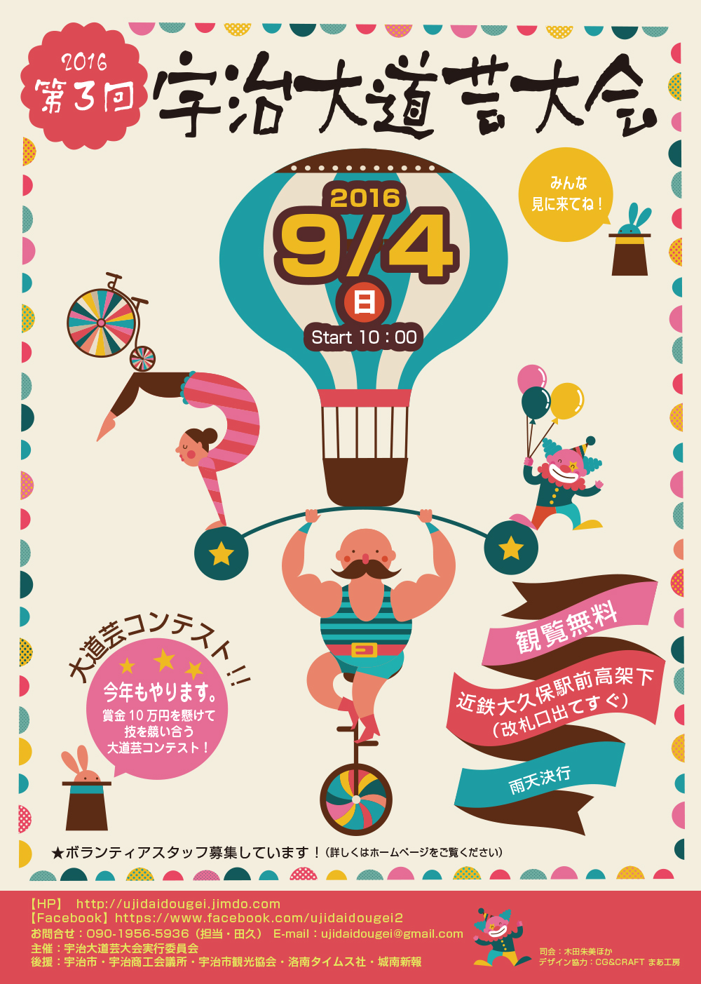 FEB 08 2017 グラフィック チラシー宇治大道芸大会 宇治大道芸大会のチラシです。 デザイン協力で参画しました。 投稿者: nakazawaグラフィック, 制作例 チラシー京都八百忠 紺屋の白袴